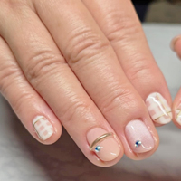 ギンガムチェック☆ PINK×ゴールドで可愛い春ネイルに。