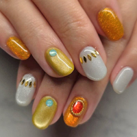 ホワイトラメ、ゴールドの乱切りホロが入ったキラキラなマグネット☆サンダルとよく似合う♪ |