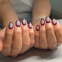 じんわりフレームネイル♡ プラムカラー×シアーホワイト。お色変えでおかわりのデサイン♪ |
