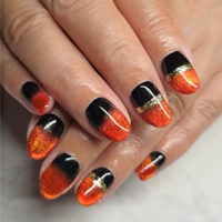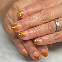 琥珀色♡ ゴールドのラメとホログラムをたっぷり使ったオータムネイルに。 |