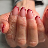フレンチスタイル♡ ボルドーのフレンチネイル。こっそり2本だけ、ゴールドのラインが入っています♪ |