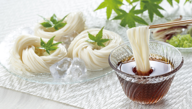 見た目も涼しげなそうめん。 つるつるしたのど越しも大好きな麺です。