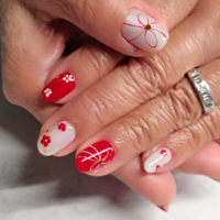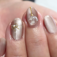 新年を迎えるネイルは水引と梅、デザインは違えど恒例です。ホワイトのマグネットで華やかさアップ☆ |